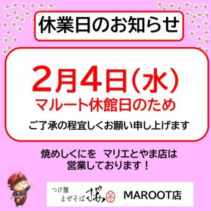 【2月4日(水)MAROOT休館日のため休業いたします】