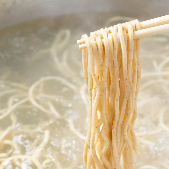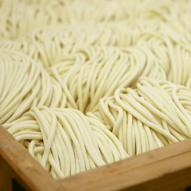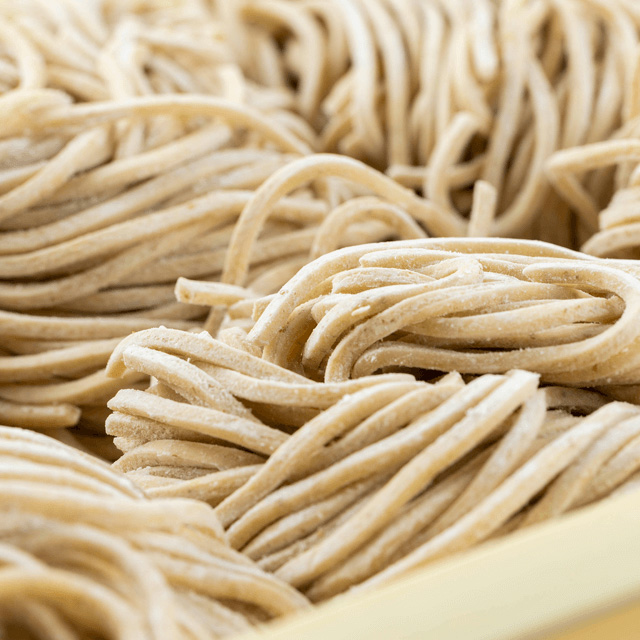 小麦は石臼引きのはるゆたかを中心に100%国産を使用し食物繊維が豊富な全粒粉を入れることで小麦の風味が増し歯切れの良い食感とのど越しが実現しました。
