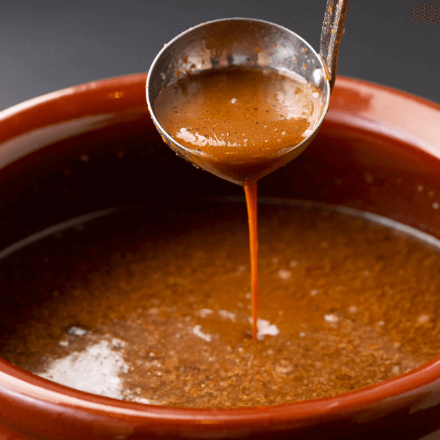 鰹・いりこ・鯖・宗田節の魚介と昆布、ゆずを効かせてキレのある味わいの魚介醤油タレに仕上げました。